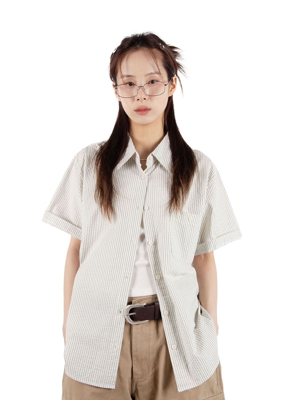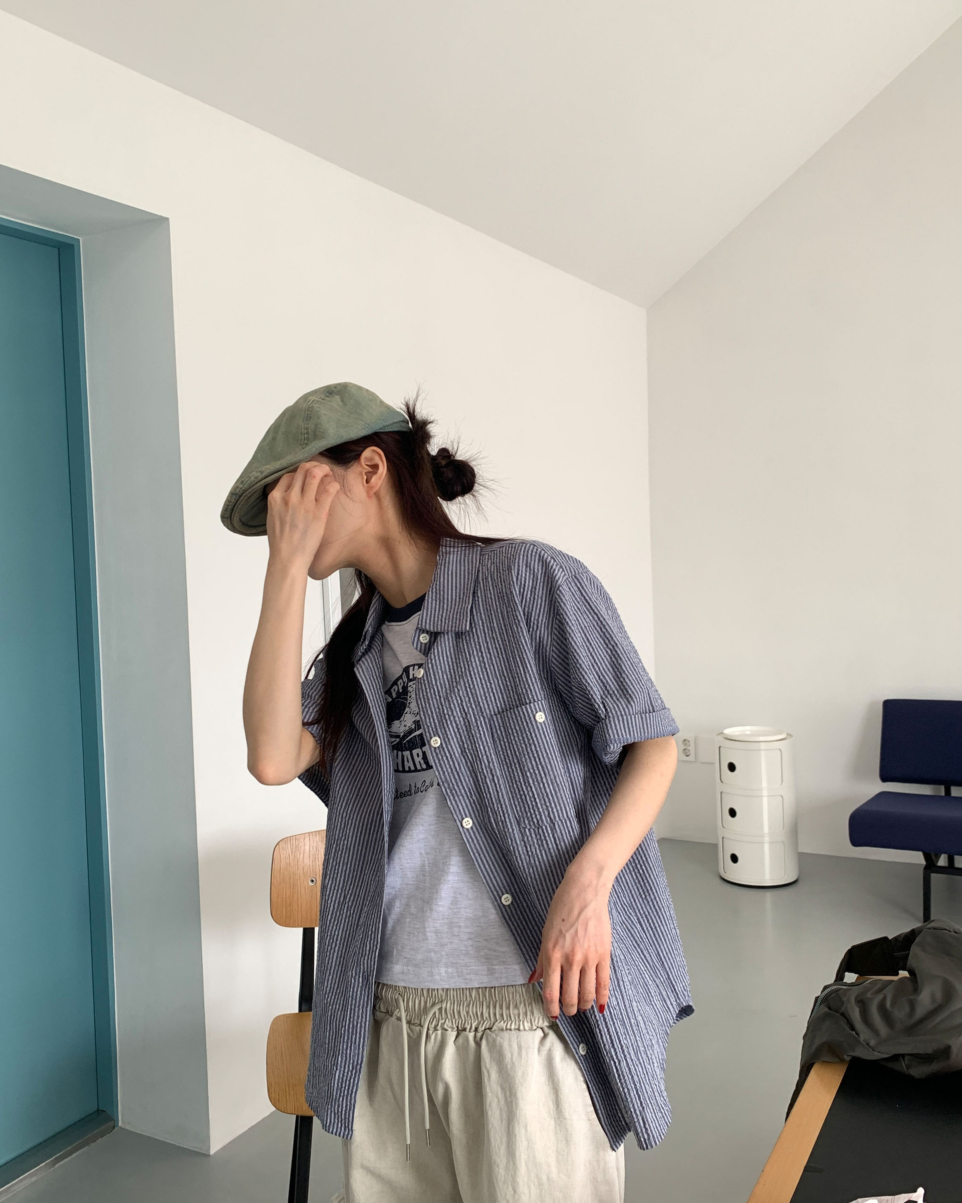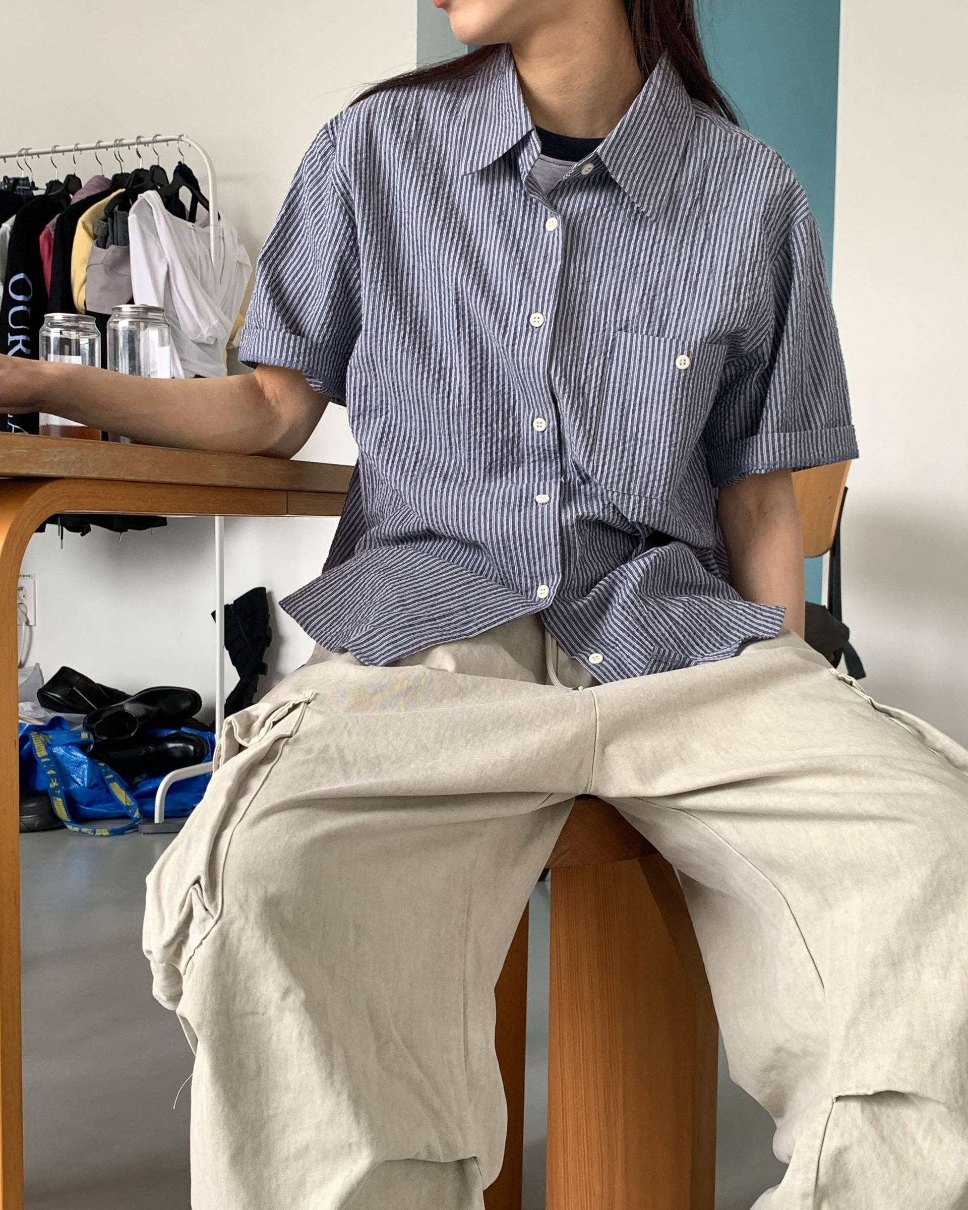 (推薦)SEERSUCKER棉麻條紋襯衫(2colors)