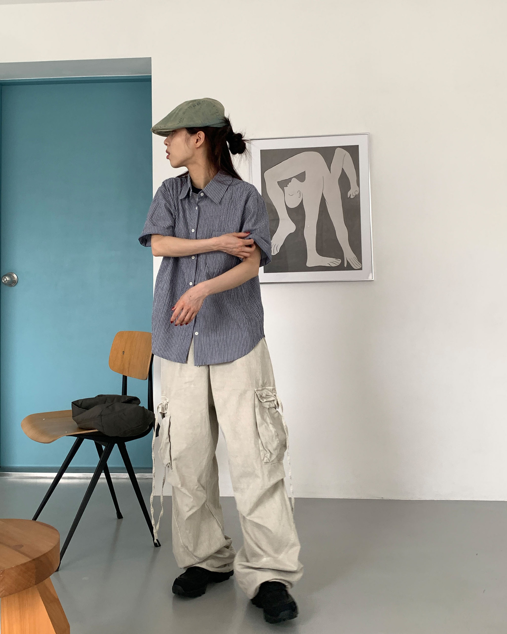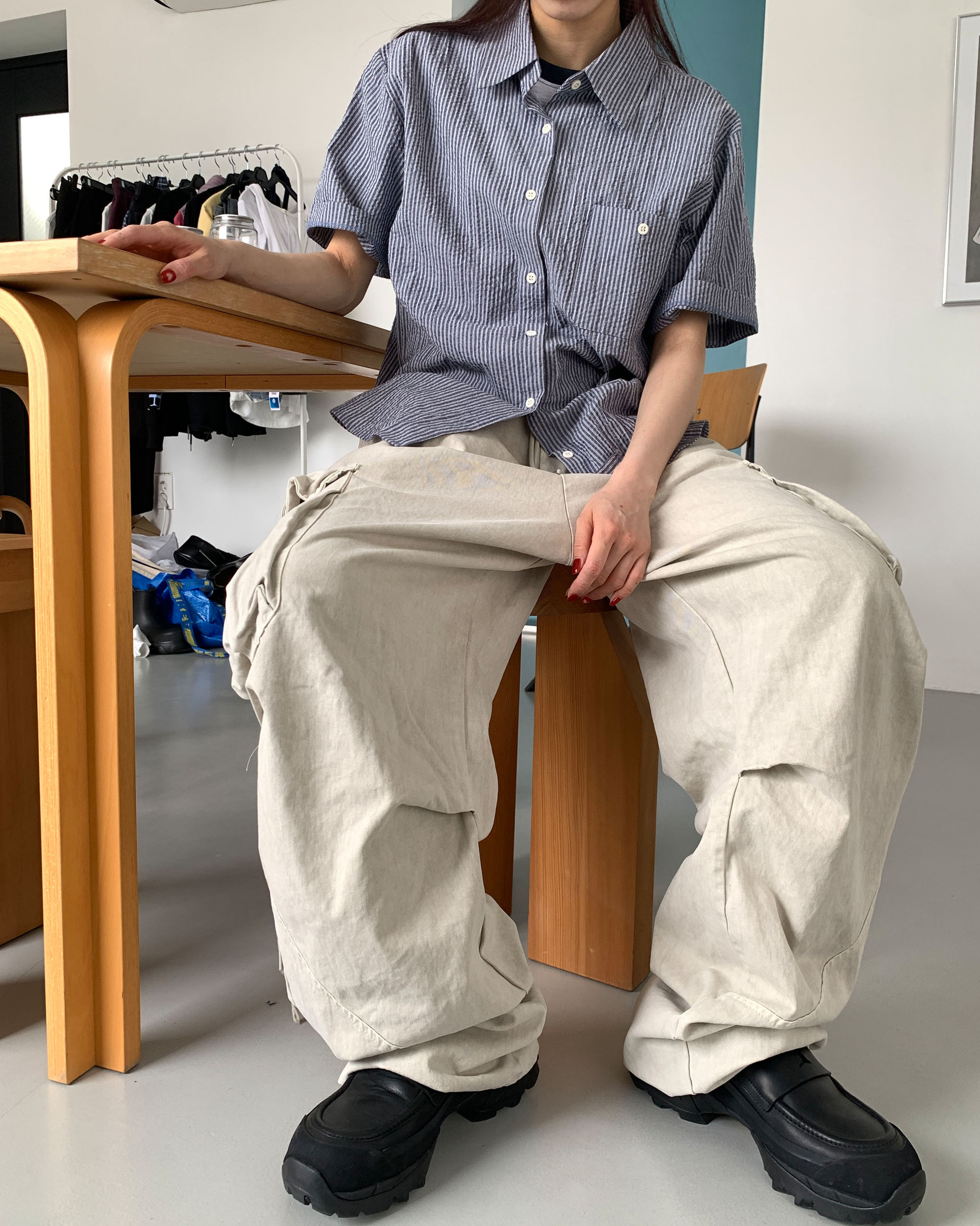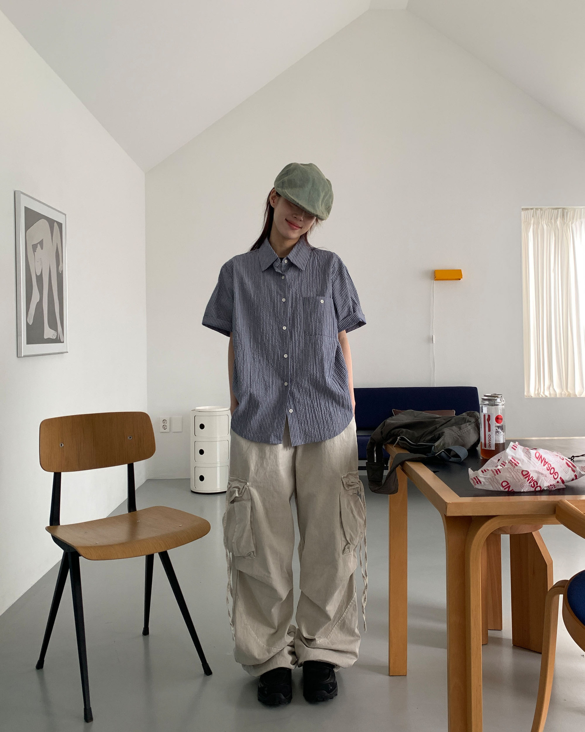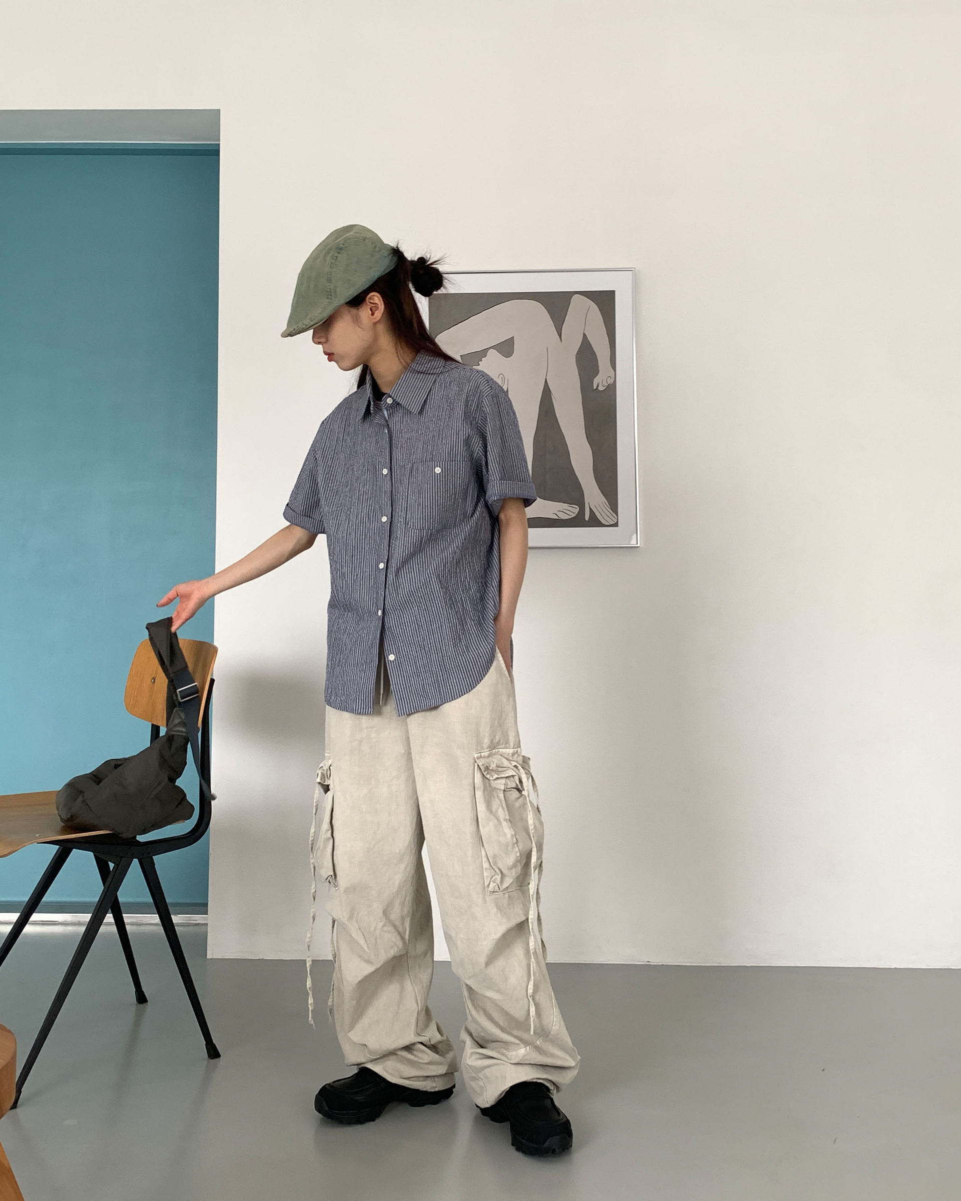 (推薦)SEERSUCKER棉麻條紋襯衫(2colors)